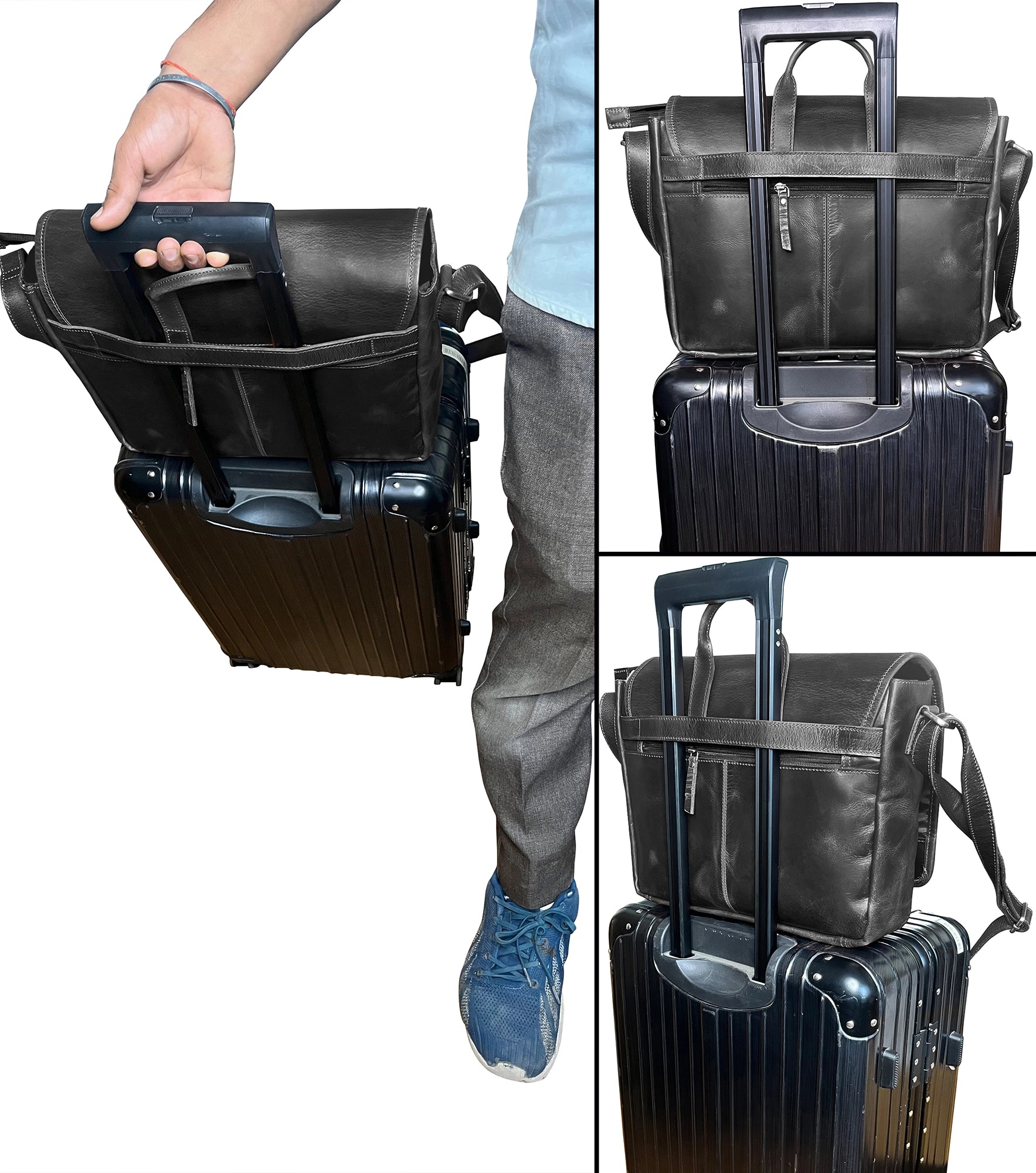 Designed with the discerning professional in mind, our Leather Work Bag seamlessly transitions from the office to weekend getaways. Whether slung over the shoulder or attached to rolling luggage, its versatility knows no bounds. For those preferring a relaxed vibe, it doubles as a stylish Leather Satchel for Men, adding a touch of sophistication to any ensemble.