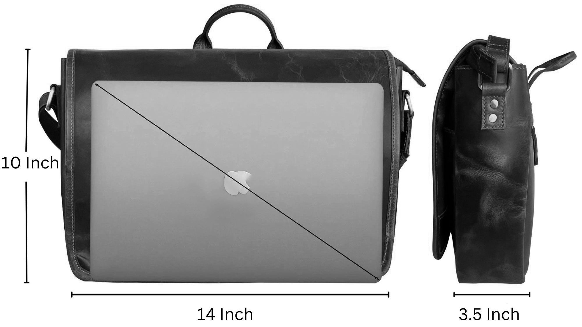 At 14" x 10" x 3.5" inches, this Leather Briefcase for Men offers ample space to accommodate your laptop and essentials, keeping them secure and organized on the go. The padded laptop compartment fits devices up to 14”, ensuring protection for your tech essentials. With dedicated slots for mobile, cards, pens, and keys, accessing your work accessories has never been easier.