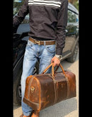 Introducing the epitome of craftsmanship and style, TSA approved Leather Duffle Bag for men, meticulously stitched by skilled Indian artisans. This exquisite piece is fashioned from premium full grain leather, destined to acquire a rich, enviable patina over time, embodying timeless elegance.