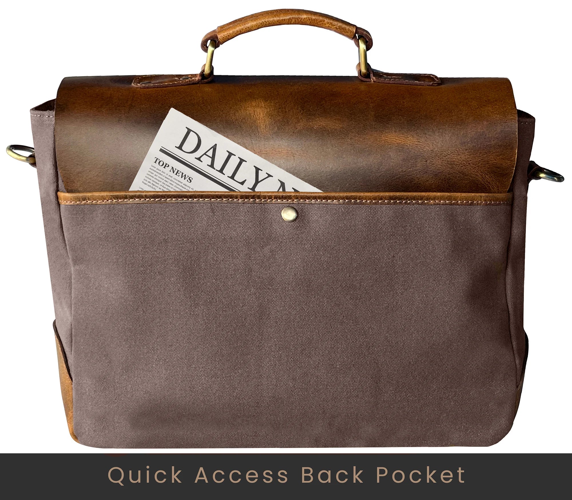 Rover Leather Canvas Messenger Bag Briefcase Laptop Bag (Dark Grey)